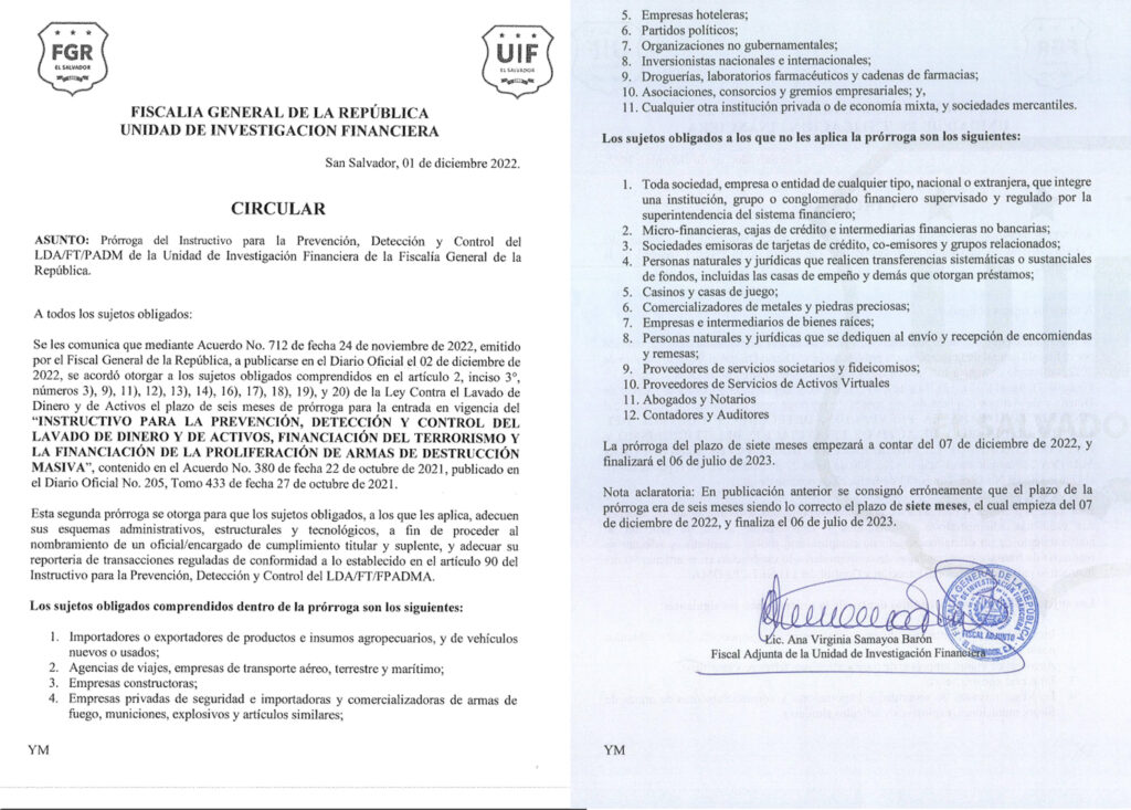 Ayer, y durante la mañana, circuló en redes sociales un supuesto comunicado de la UIF señalando la prórroga en sentido general, sin sujetos excluidos; sin embargo, este día se hizo de conocimiento por la propia UIF el memorándum oficial sobre la prórroga, en la que se incluyen doce sujetos obligados que fueron incluidos en la prórroga entre los que se encuentran los abogados, notarios, contadores y auditores.