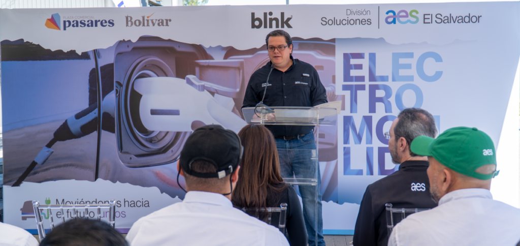 AES El Salvador, en colaboración con Blink Charging, inauguró una estación de carga para vehículos eléctricos en la Plaza Comercial Pasares, ubicada en la Carretera Quezaltepeque, kilómetro 35 ½, San Juan Opico, La Libertad.