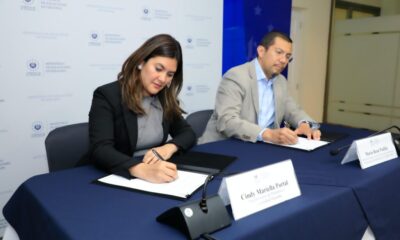 La viceministra de Diáspora y Movilidad Humana, Cindy Mariella Portal, y el director ejecutivo de la Cámara Salvadoreña de Tecnología de Información y Comunicaciones (CASATIC), Mario...
