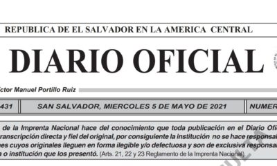 Ayer la Imprenta Nacional anunció que el Diario Oficial de fecha 5 de mayo fue publicado ese mismo día, dicho ejemplar contiene la “Ley para el...
