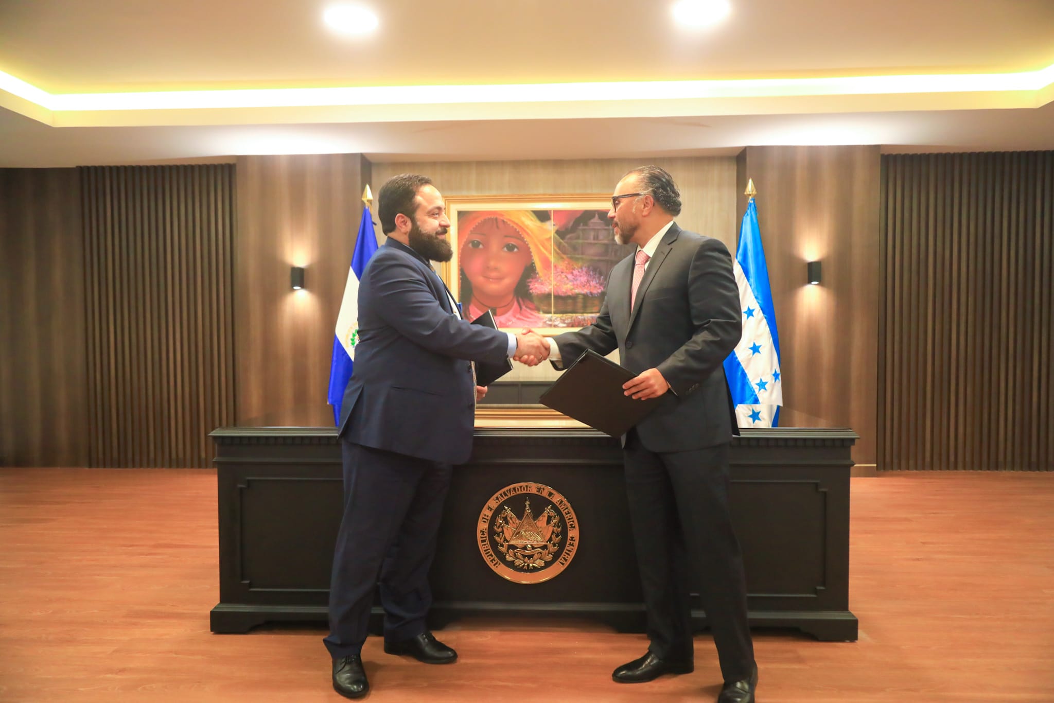El presidente de la Asamblea Legislativa de El Salvador, Ernesto Castro, y su homólogo de Honduras, Luis Redondo Guifarro, firmaron un convenio de cooperación técnica.