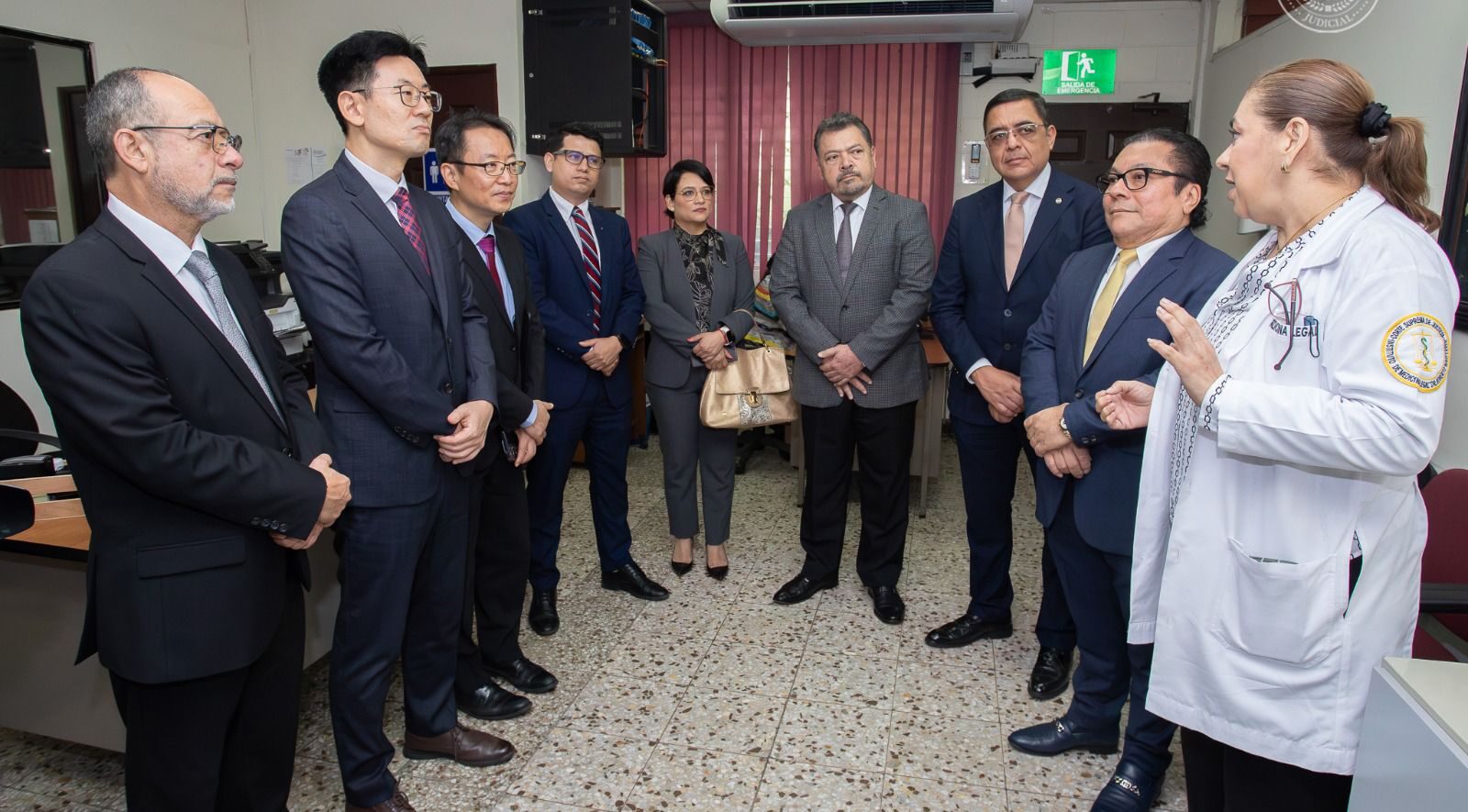 Durante la visita, las autoridades coreanas y centroamericanas realizaron un recorrido por las instalaciones del IML, acompañadas por Saúl Quijada, jefe del Departamento de Antropología Forense, y Miguel Enrique Velásquez Velásquez, jefe Técnico Normativo del Departamento Académico.