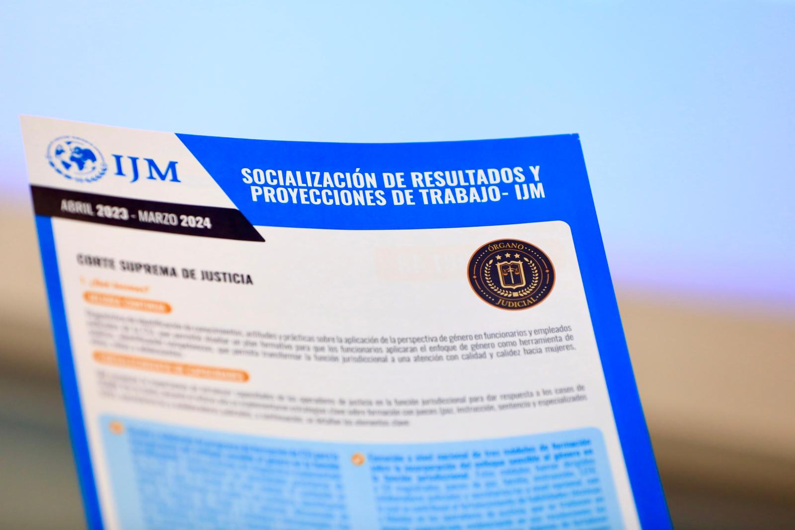 En una sesión conjunta entre la Corte Suprema de Justicia y la Misión Internacional de Justicia, se presentaron los resultados y la proyección de trabajo para el periodo 2023-2024, centrados en el proyecto de fortalecimiento del sistema judicial para abordar la violencia contra mujeres, niñez y adolescencia.