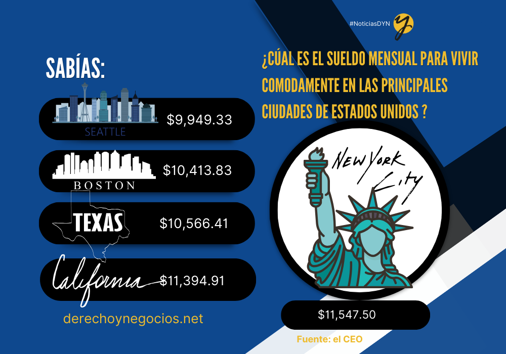¿Cuál es el sueldo mensual para vivir comodamente en las principales ciudades de Estados Unidos?