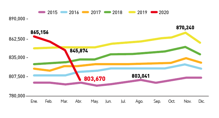 Según datos del ISSS, el número de personas cotizantes de la Institución para abril 2020 es equiparable al reportado para abril del 2015. Significa un retroceso de 5 años.
