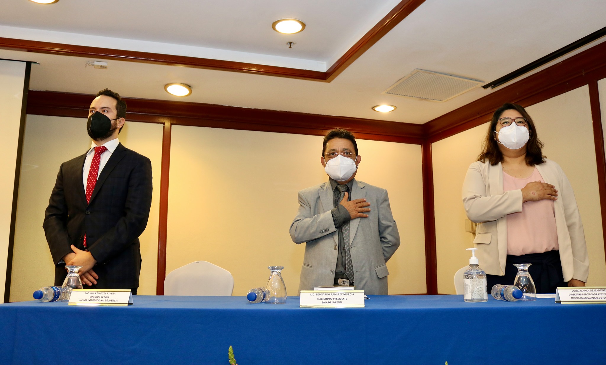 Como conferencistas participan la Dra. Adriana Carolina Rojas, Juez Penal del Circuito con función de Conocimiento de Bogotá, Colombia; Maestro Alberto García, Juez de Juicio del Tribunal Penal del Primer Circuito Judicial de Alajuela, Costa Rica y el Maestro Martín Rogel Zepeda, Magistrado de la Cámara Tercera de lo Penal de la Primera Sección del Centro. La Lcda. Marla de Martínez, Directora Asociada Rule of Law de Misión Internacional de Justicia acompañó en la mesa de honor.