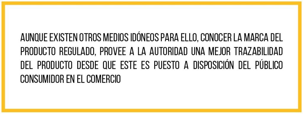 Al no corresponder la marca de un producto a un aspecto técnico determinante para su registro, el propósito perseguido al proveerle ese dato a la autoridad regulatoria, es su adecuada identificación. Aunque existen otros medios idóneos para ello, conocer la marca del producto regulado, provee a la autoridad una mejor trazabilidad del producto desde que este es puesto a disposición del público consumidor en el comercio.