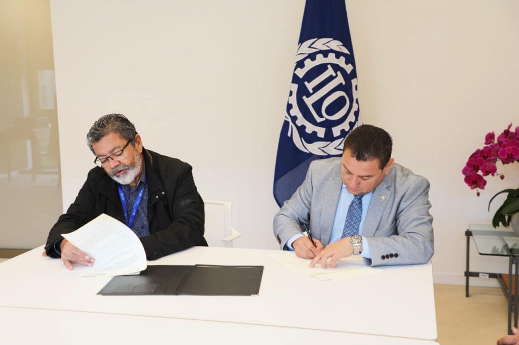 “Este día hemos firmado convenio con UOCRA, su Secretario General Gerardo Martínez, de la visita en OIT llevaremos apoyo para nuestros trabajadores”, tuiteó el Ministro desde su cuenta oficial.