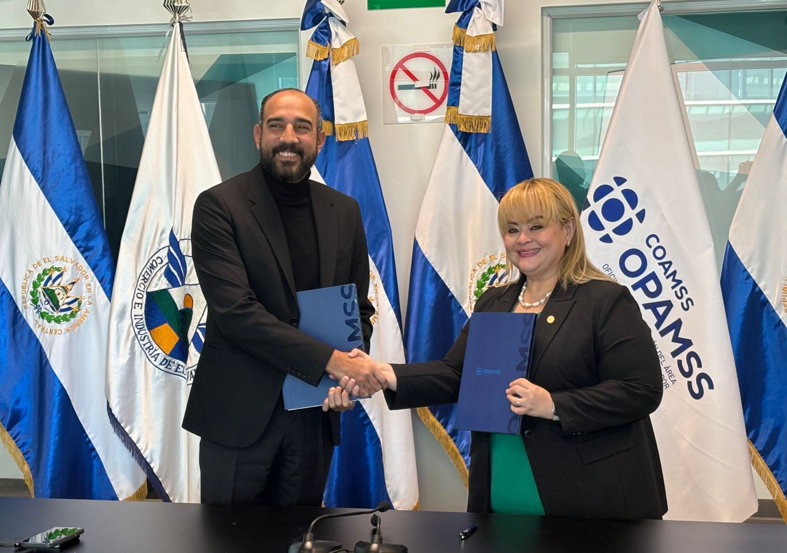 La firma del documento estuvo a cargo de Silvia Cuéllar, presidenta de Coexport, y Luis Rodríguez, director de la Opamss.