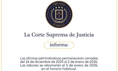 La Corte Suprema de Justicia (CSJ) recordó que todas sus oficinas administrativas permanecerán cerradas desde el miércoles 24 de diciembre de 2025 hasta el viernes 2...