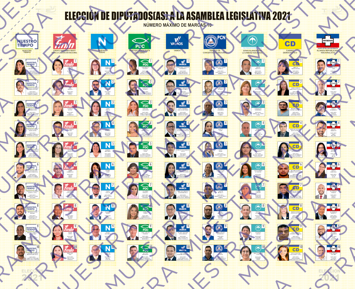 Consulte los diseños en la Guía de Elecciones 2021: https://tse.gob.sv/elecciones-2021/inicio#papeletas-de-votacion-CM